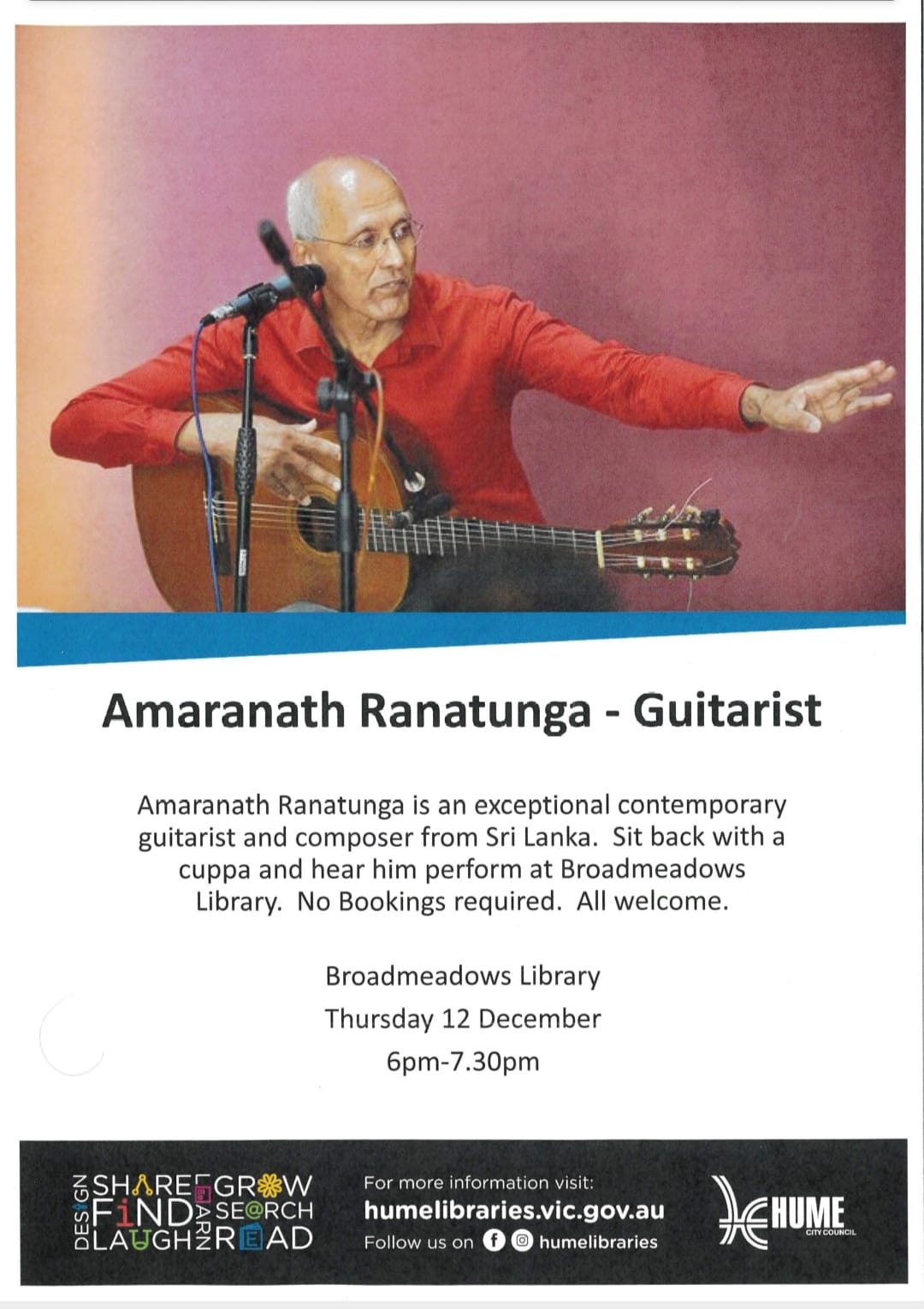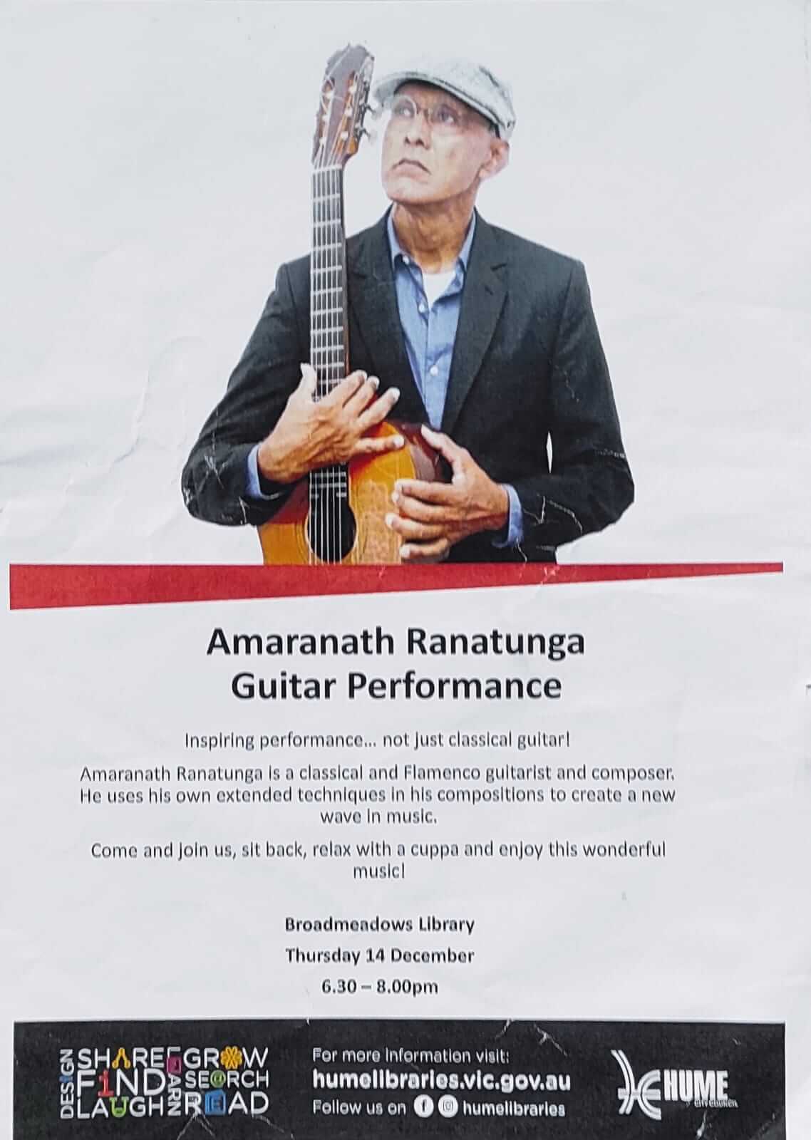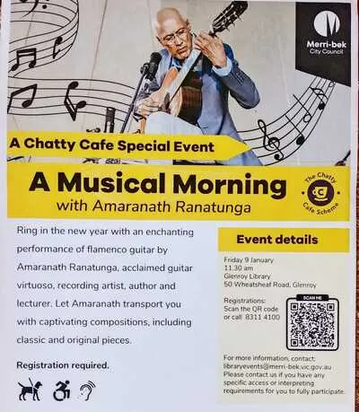 Live Concert "A Musical Morning", at Glenroy Library, Glenroy, VIC. Australia on the 9th Jan.2026 @ 11.30 a.m.