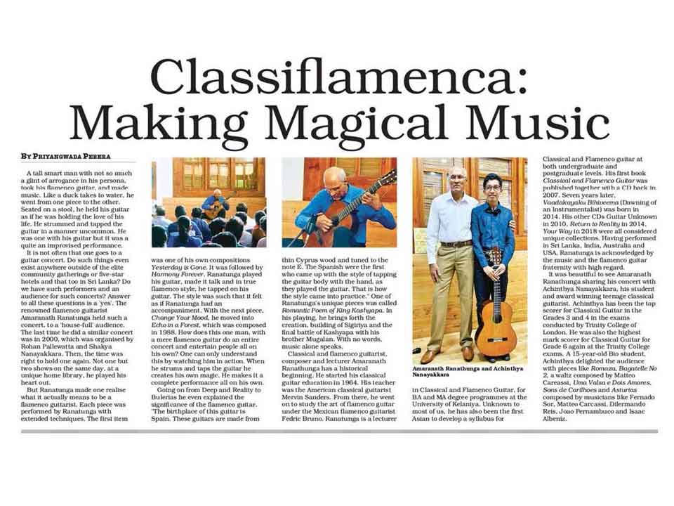"RARE" postgraduate students of Classical and Flamenco Guitar and Amaranath Ranatunga Live in Concert at the University of Kelaniya on Dec.4th.2019 4.30 p.m.